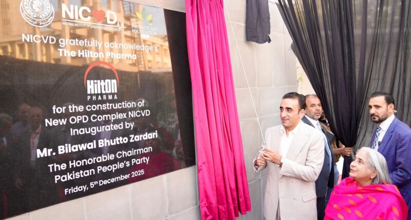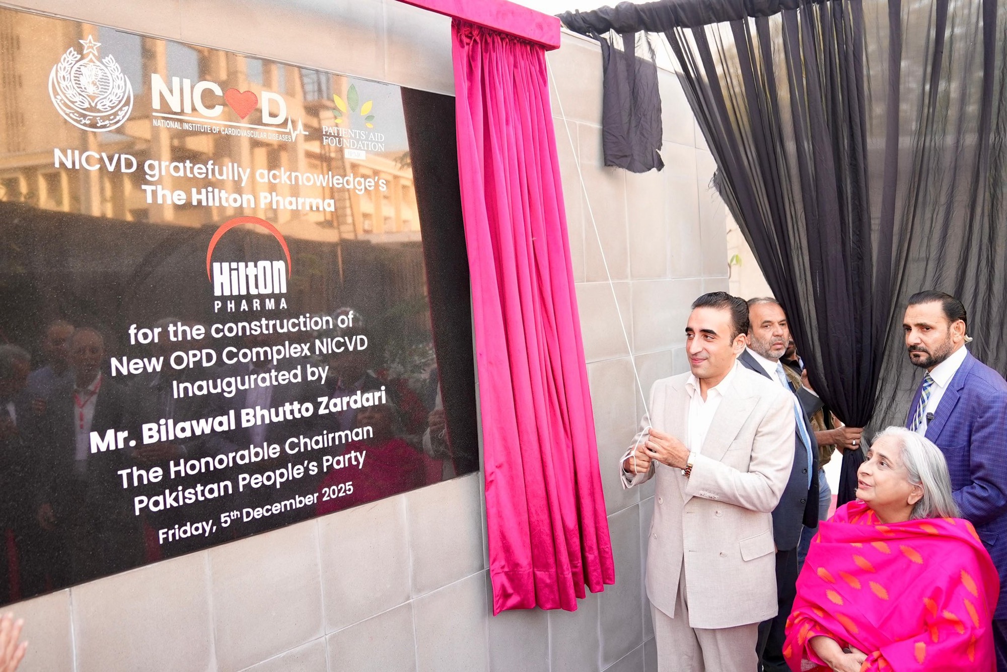 KARACHI, December 5 — Chairman Pakistan Peoples Party (PPP) Bilawal Bhutto Zardari inaugurated the newly constructed, state-of-the-art OPD Block at the National Institute of Cardiovascular Diseases (NICVD) Karachi, a flagship institution of the Sindh Government and the heart of the world’s largest free cardiac care network.